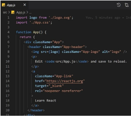 function App() { return ( <div> <h1> This is my first react code! </h1> </div> ); }